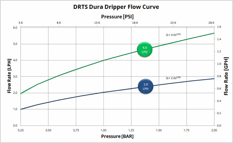 Dura is a nonsymmetrical dripper suitable for 12mm to 16mm pipe.