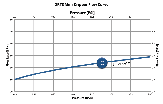 Dripper CV of <5% ensures flow uniformity between drip outlets.